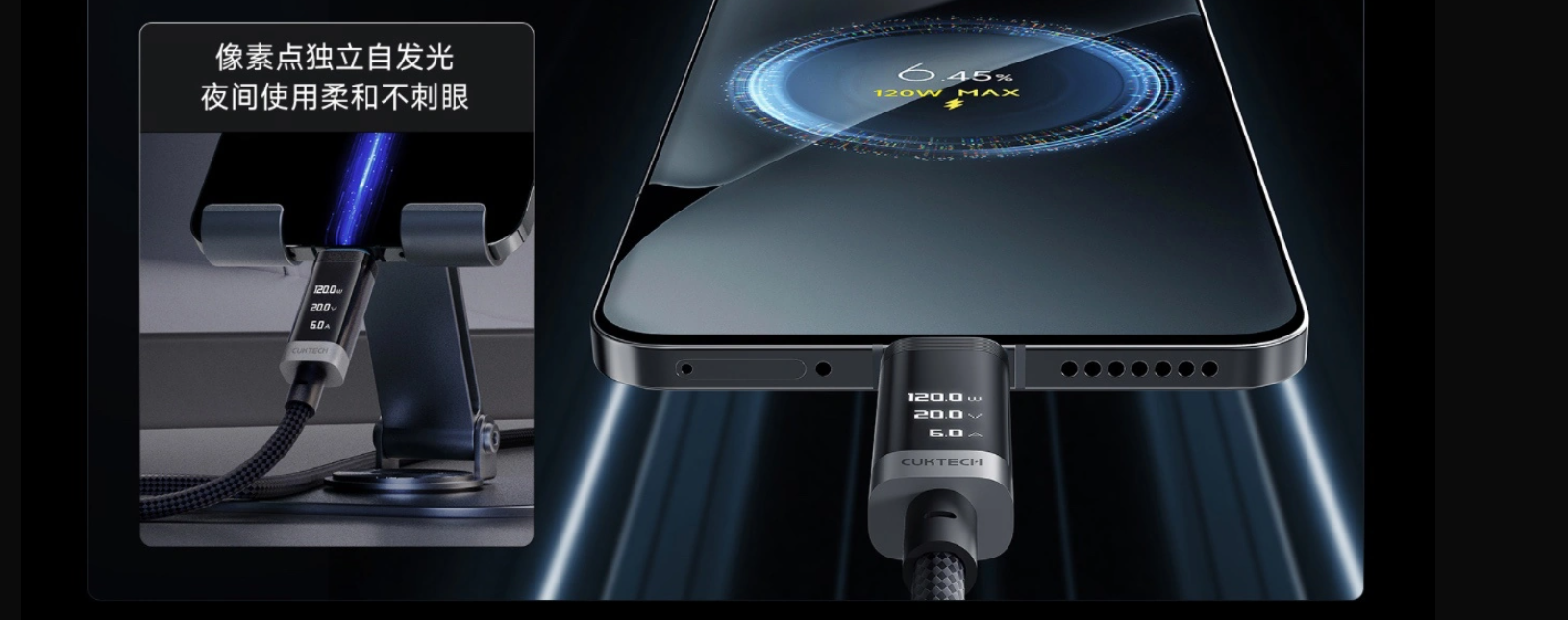 240 Вт, магнитное крепление, встроенный экран и плетение как у Apple — дешевле $10. Представлен плетёный кабель Cuktech No. 6 Magnetic OLED Version