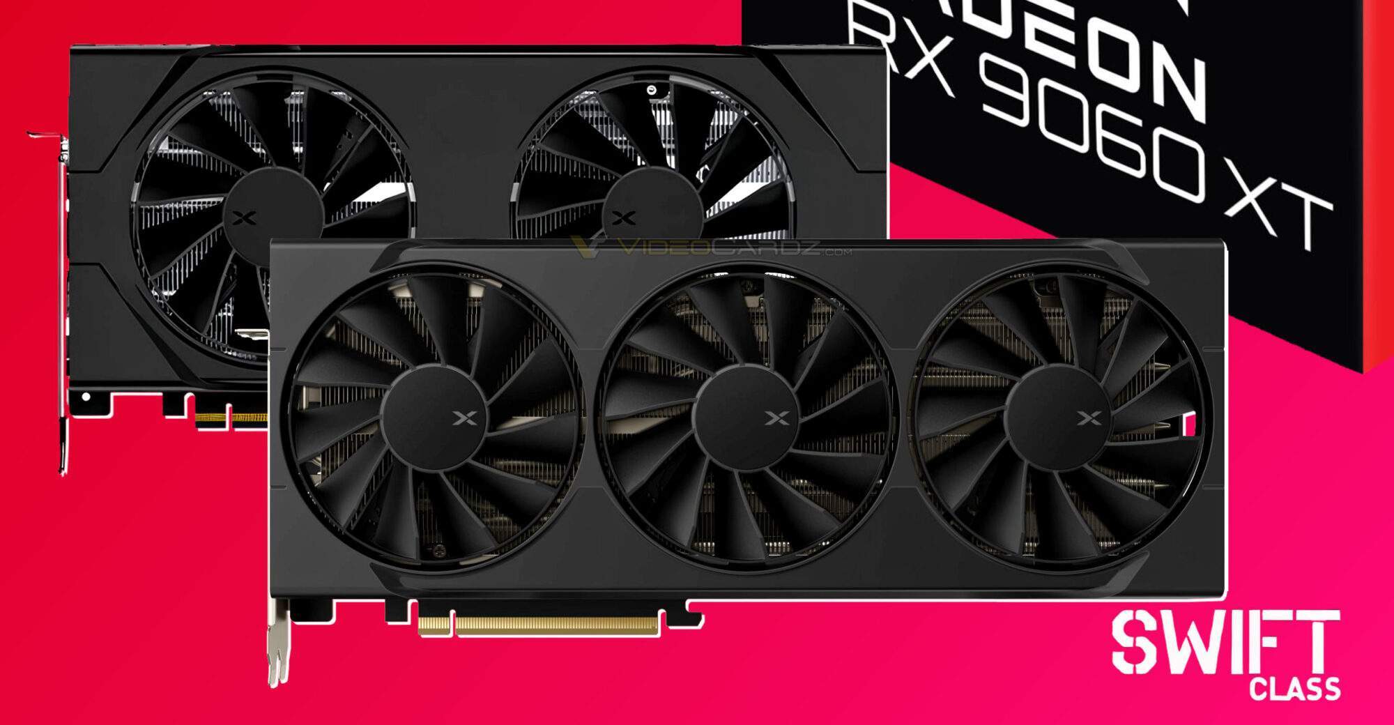 На момент публикации данных в каталоге Amazon были представлены только видеокарты серии XFX Swift, которые не относятся к топовым кастомным моделям в линейке компании. Тем не менее, они отличаются заводским разгоном: тактовая частота GPU достигает 3320 МГц (референсная — 3230 МГц). XFX Radeon RX 9060 XT с 8 ГБ памяти оснащена двухвентиляторной системой охлаждения, версия с 16 ГБ имеет три вентилятора.