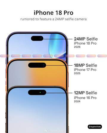 Ещё один резкий скачок: iPhone 18 Pro и iPhone 18 Pro Max перейдут с 18 Мп на 24 Мп во фронтальной камере