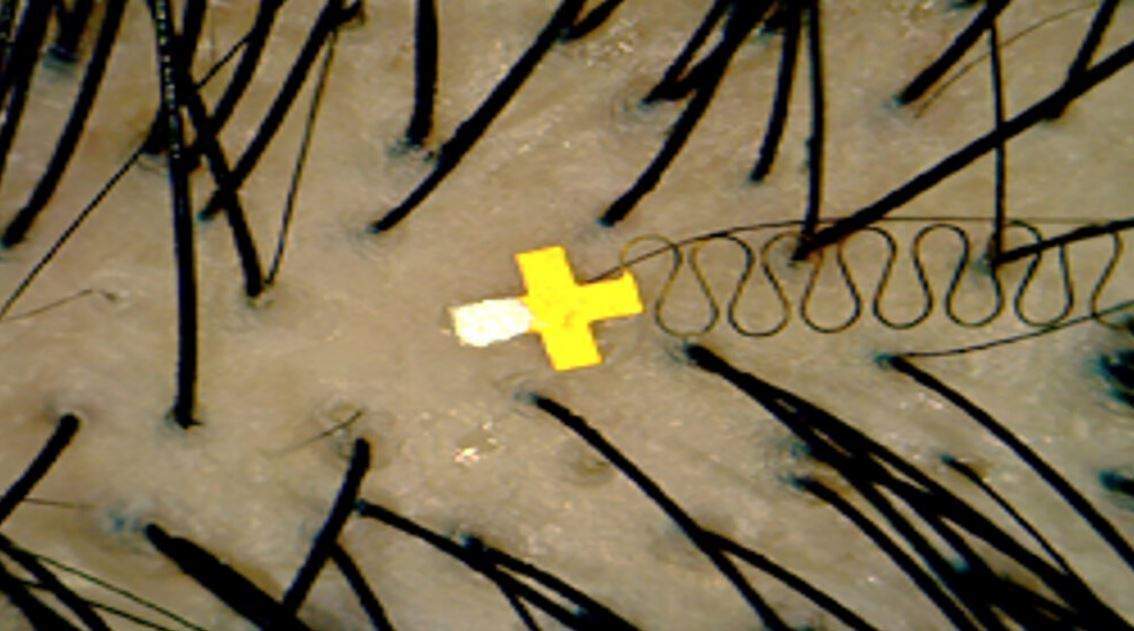Датчик сделан из мягкой смолы и выглядит как маленький крестик с микроскопическими шипами. Эти шипы слегка прокалывают верхний слой кожи головы — не глубже, чем укол комара — и считывают сигналы мозга из-под поверхности. От датчика тянется гибкий провод, похожий на извивающуюся змейку. Он проходит через волосы и соединяется с мини-процессором. Тот, в свою очередь, отправляет команды по беспроводной связи на устройство — будь то компьютер, смартфон или умные очки.