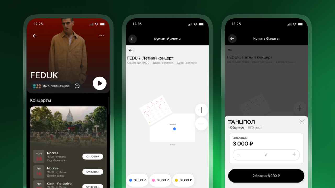 Новая функция доступна для всех исполнителей, чьи концерты представлены на Afisha.ru. Блок с билетами появится в приложении «Звука» на странице артиста. Пользователю остается выбрать дату, категорию — и оформить покупку в пару касаний, не прерывая прослушивание. Билеты придут на электронную почту.