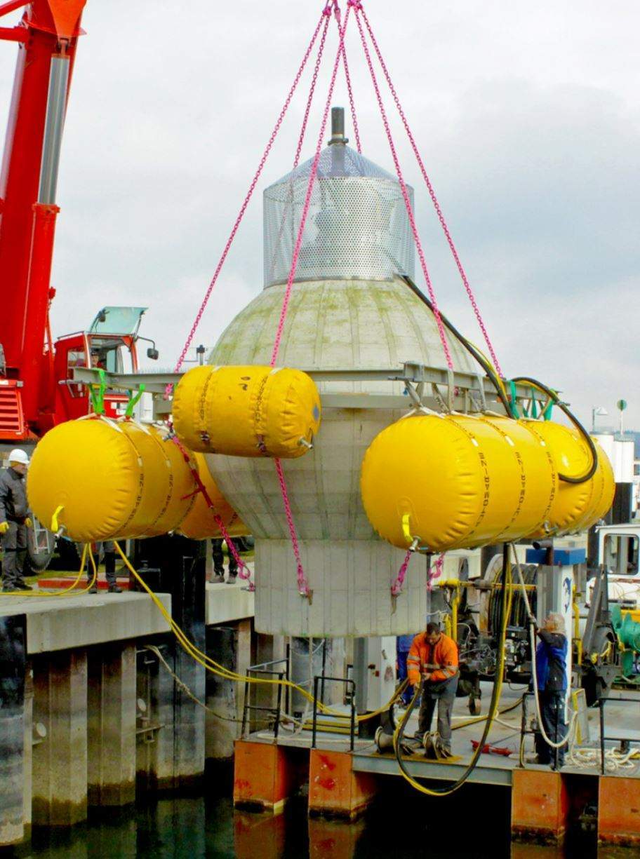 Сферы диаметром около 9 метров и весом 400 тонн размещаются на глубине 600–800 метров. Пустая сфера считается полностью заряженной: при открытии клапана морская вода поступает внутрь, вращая турбину, которая вырабатывает электроэнергию. Для «перезарядки» вода выкачивается обратно с использованием энергии из сети. Технология успешно протестирована в озере Констанц в Европе, а к концу 2026 года полномасштабный прототип, напечатанный на 3D-принтере, будет развернут у побережья Лонг-Бич, Калифорния, в рамках проекта Минэнерго США стоимостью 4 миллиона долларов.