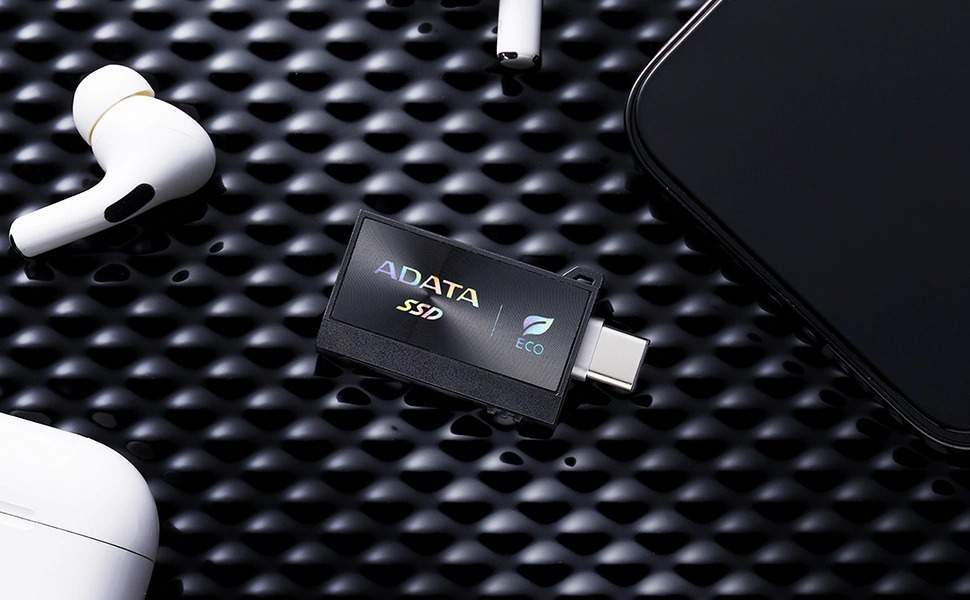 50% корпуса мобильного твердотельного накопителя Adata SC730 изготовлено из пластика PCR, что снижает выбросы углерода в процессе производства на 39%. На корпусе не остаются отпечатки пальцев.