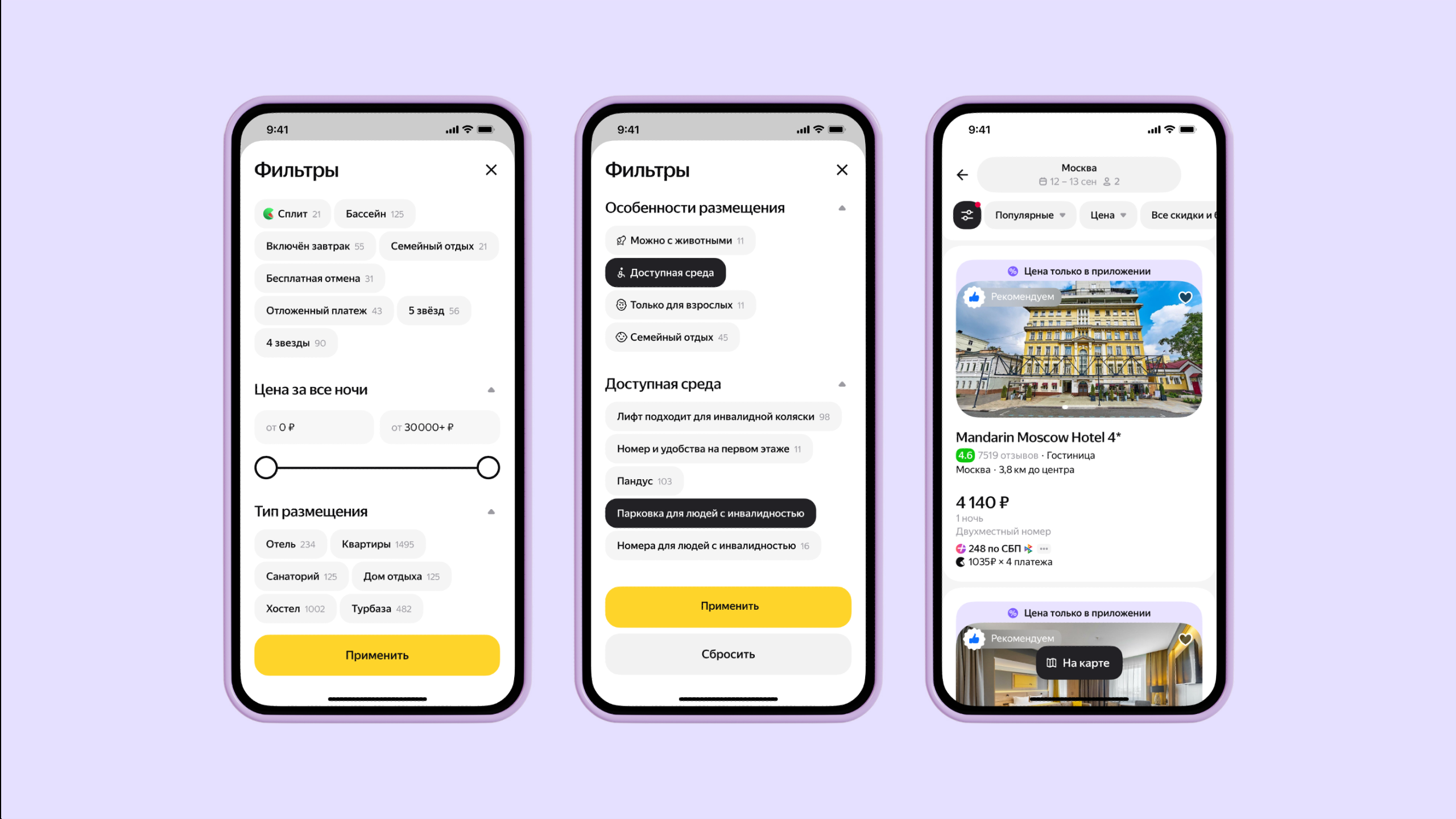 В приложения появились фильтры соответствующие. Также добавилась возможность посмотреть больше подробностей о доступности на карточке отеля, для некоторых объектов доступны 3D-туры — по зданию и номерам.